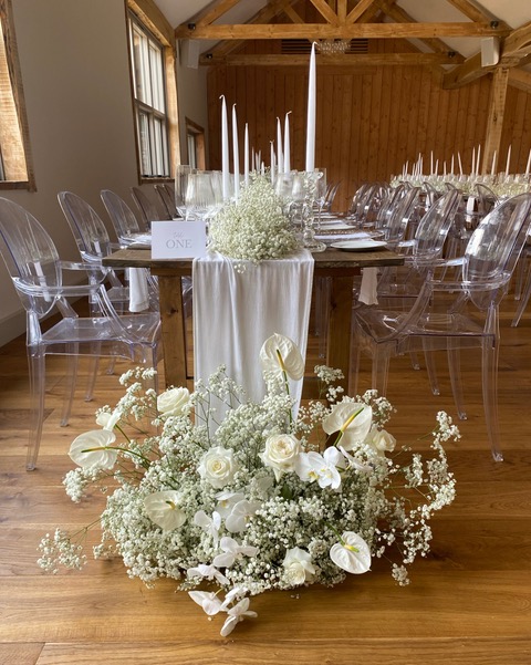 With every venue style being different, some might suit certain styles & designs more than others, Im here to help and guide you through choosing the best arrangements to suit your reception space. The tables flowers are a big part of your day, to be admired by your guests during the wedding breakfast and to be enjoyed throughout the evening celebrations. Whether it’s the simplicity of bud vases filled with single stems or large, striking, blousy designs — and everything in-between, your tables flowers add that super special, finishing touch to your reception. There might be other areas of your reception venue where you would like to add florals, your top table, maybe some entrance flowers, welcome signs & seating plans, cake flowers, there is always lots of scope decorating venues.